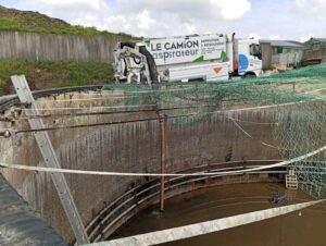 Fin avril, nous avons été sollicités par un agriculteur pour aspirer, sur son unité de méthanisation, de la matière liquide au fond d’une fosse.