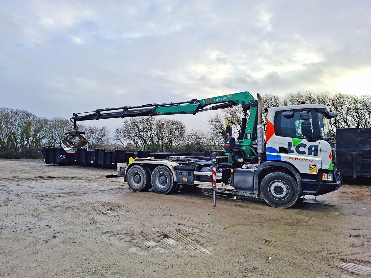 Le nouveau camion est un camion 26T polybenne, monté sur porteur Scania et équipé d’un bras et d’une grue HIAB.